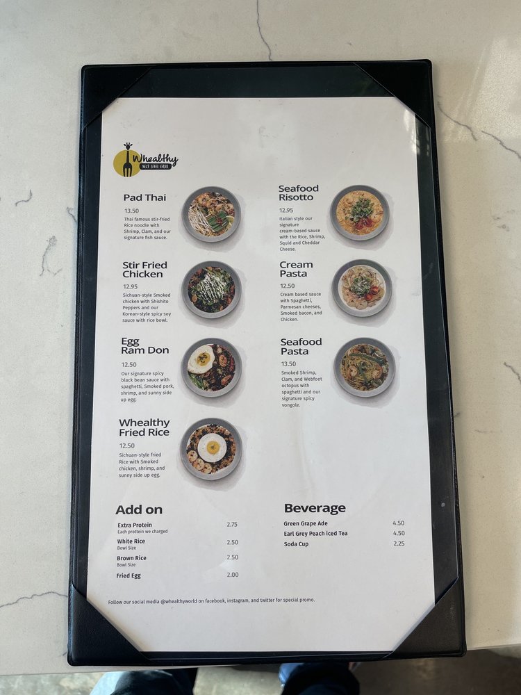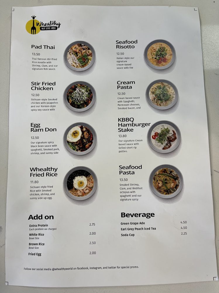 Discover a delightful blend of flavors at Whealthy-Irvine, located in the heart of Irvine, CA. This trendy eatery focuses on health-conscious dining with an extensive menu that caters to various dietary preferences. On offer are customizable options such as their Build-Your-Own Bowl and Cup, providing fresh ingredients for a personalized meal. For those seeking something unique, try the Cream Pasta or the Egg Ram Don, both bursting with flavor and creativity.